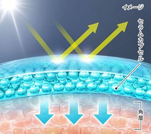 そこで微細なUVカット成分を包み込んだセラムカプセルが盾となり、強力な紫外線から肌を守り抜くという新しい処方を開発しました。