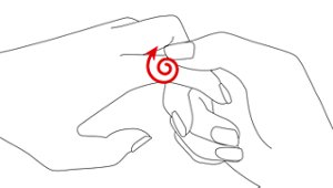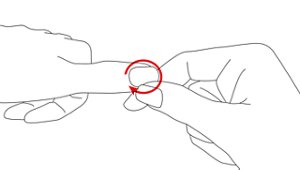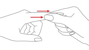 最初に、指を下から支えるようにして人差し指と親指で挟み、爪先まですべらせます。