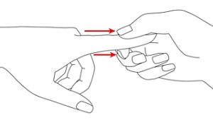次に側面。指のつけ根の側面を人差し指と親指で挟み、同様に指先まですべらせます。