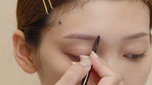 George:続いて眉毛を、「ケイト ザ アイカラー M105(WEB限定色)」とペンシルの「ケイト アイブロウペンシルZ BRー4」で描いていきます。「ケイト ザ アイカラー」は大人気のアイシャドウですが、アイブロウやハイライト、シェーディング、チークなど、いろいろな用途で使えるので時短メイクにおすすめのアイテムです。