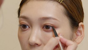 アイラインは「ルナソル シークレットシェイパーフォーアイズ 02」で、目を開けたまま目尻にのみ引きます。これでメイクはすべて完成です。