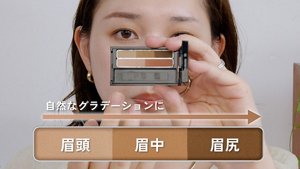 かじえり:次に眉の下描きをしていきます。アイブロウパウダーを使うことで自然な下描きができます。使うのは「ケイト デザイニングアイブロウ3D(デュアルカラー) EX-4」。「デザイニングアイブロウ3D」は私も以前から使っていますが、こちらは血色感カラーがセットになっています。すごい画期的!