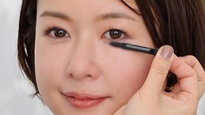 目周りの気になるくすみにはハイライトをのせて、光の効果でカバー