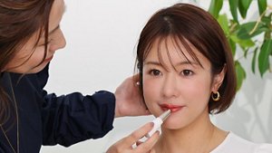 長井:最後にリップメイクですね。私のおすすめはコンシーラーを使って口もとの影を消してからリップを塗るテクニックです。「カネボウ デザイニングカラーリクイド 01」を使います。あえて明るめの色を選ぶのもポイント。ニコッとした状態で口角に線のように置いたら、指で肌を引き上げたまま、反対の手の指で下から上に向かってなじませます。口角のくすみや影にコンシーラーをなじませるときは、この「下から上へ」の引き上げの動きが結構大切!ある程度なじんだら、叩き込んで周りにぼかしていきます。