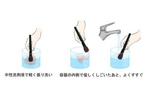 洗う前には必ず、メイクブラシの商品包装容器に記載された使用上の注意を確認しましょう。