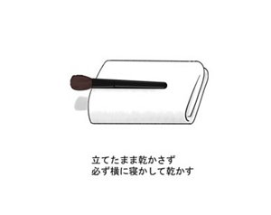 普段からメイクブラシを立てて保管している人は乾かすときも立てがちですが、水分がブラシの根もとの金具部分に入ってしまうことがあるため、立てて乾かすのはNG。必ず横に寝かして乾かしましょう。