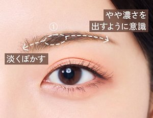 アイブロウは、毛の密集している眉毛の濃い部分①にブラシを置いて描き始めると、失敗しにくいです。