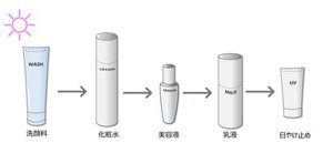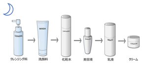 スキンケアアイテムを以下の順番で使って、肌をお手入れするのがおすすめです。