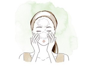 朝は、洗顔料を使って顔を洗い、肌を目覚めさせることからスタート。