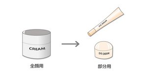 美容液やクリームなどは、顔全体に使う「全顔用」と、気になるパーツに使う「部分用」とが用意されていることがあります。