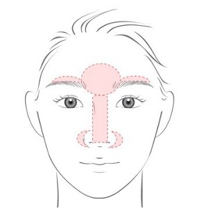 特に小鼻の脇は塗り残しがちな部分のため、小鼻の丸みに合わせてやさしく押さえるように塗ると◎。眉の上もテカリやすいので、しっかり丁寧に塗りましょう。