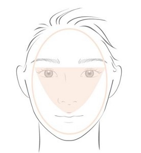 逆三角形部分はしっかり丁寧に。楕円形より外側はごく薄く塗る