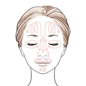 手順2 やさしくマッサージするようにらせんを描きながら、額、目もと、鼻、口もとの汚れを浮き上がらせる