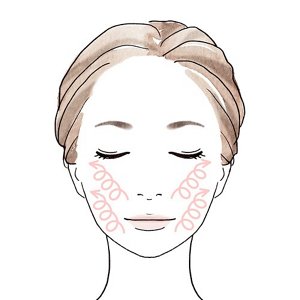 手順3 らせんを描きながら頬の汚れを浮き上がらせたあと、水またはぬるま湯で顔全体を丁寧にすすいで洗い流す