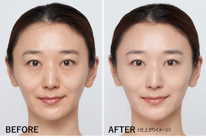 ベースメイクの基本アイテムを使い、40代モデルの肌が自然に美しく仕上がりました!とてもナチュラルな美肌仕上がりで、若見えも叶っています。
