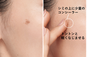 濃く大きく目立つシミがあるときだけ、コンシーラーを使ってピンポイントにカバーします。